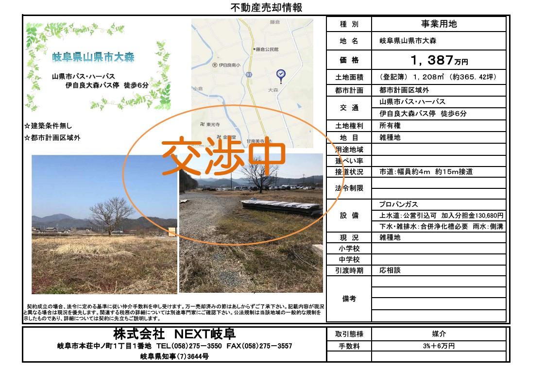 ★山県市大森 土地情報★ (新価格 1,387万円) -只今交渉中です-