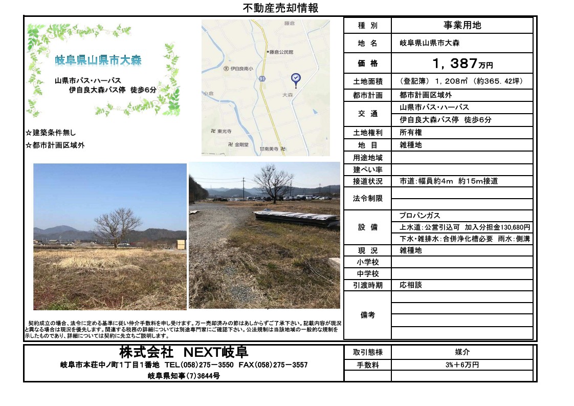 ★山県市大森 土地情報★ (新価格 1,387万円)
