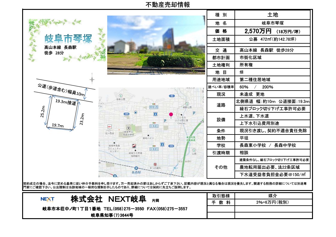 ★岐阜市琴塚 土地情報★ 142.78坪 2,570万円