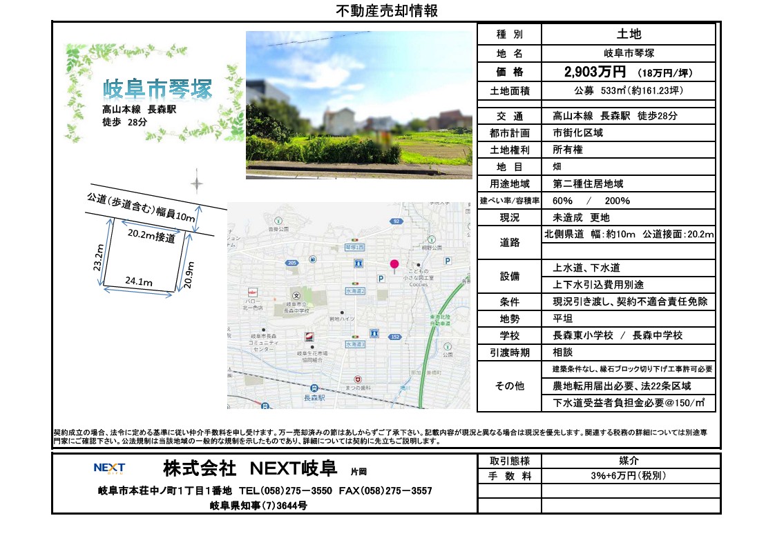 ★岐阜市長森B 土地情報★ 161.53坪 1,212万円