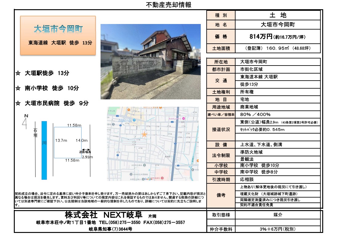 ★大垣市今岡町 土地情報★ (新価格 814万円)坪167,000円