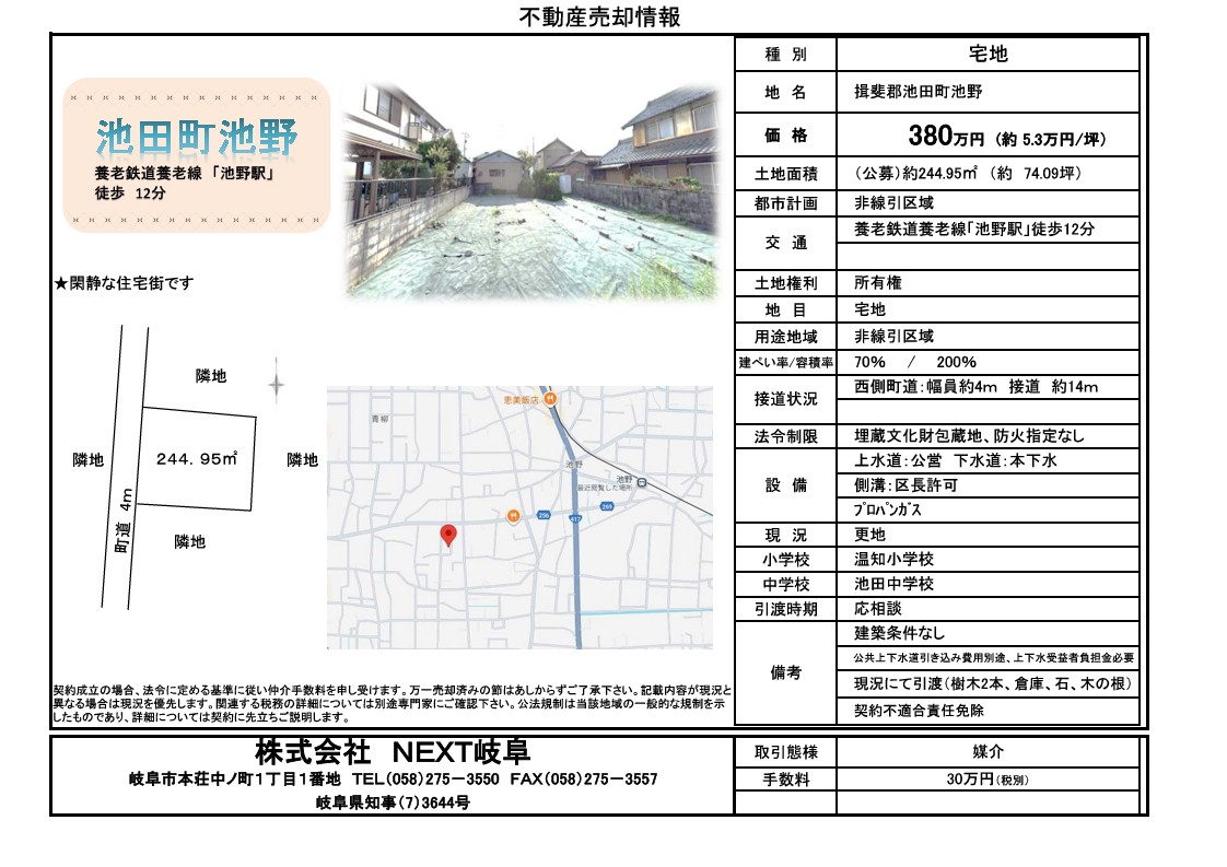 ★池田町池野 土地情報★ 約74坪 380万円
