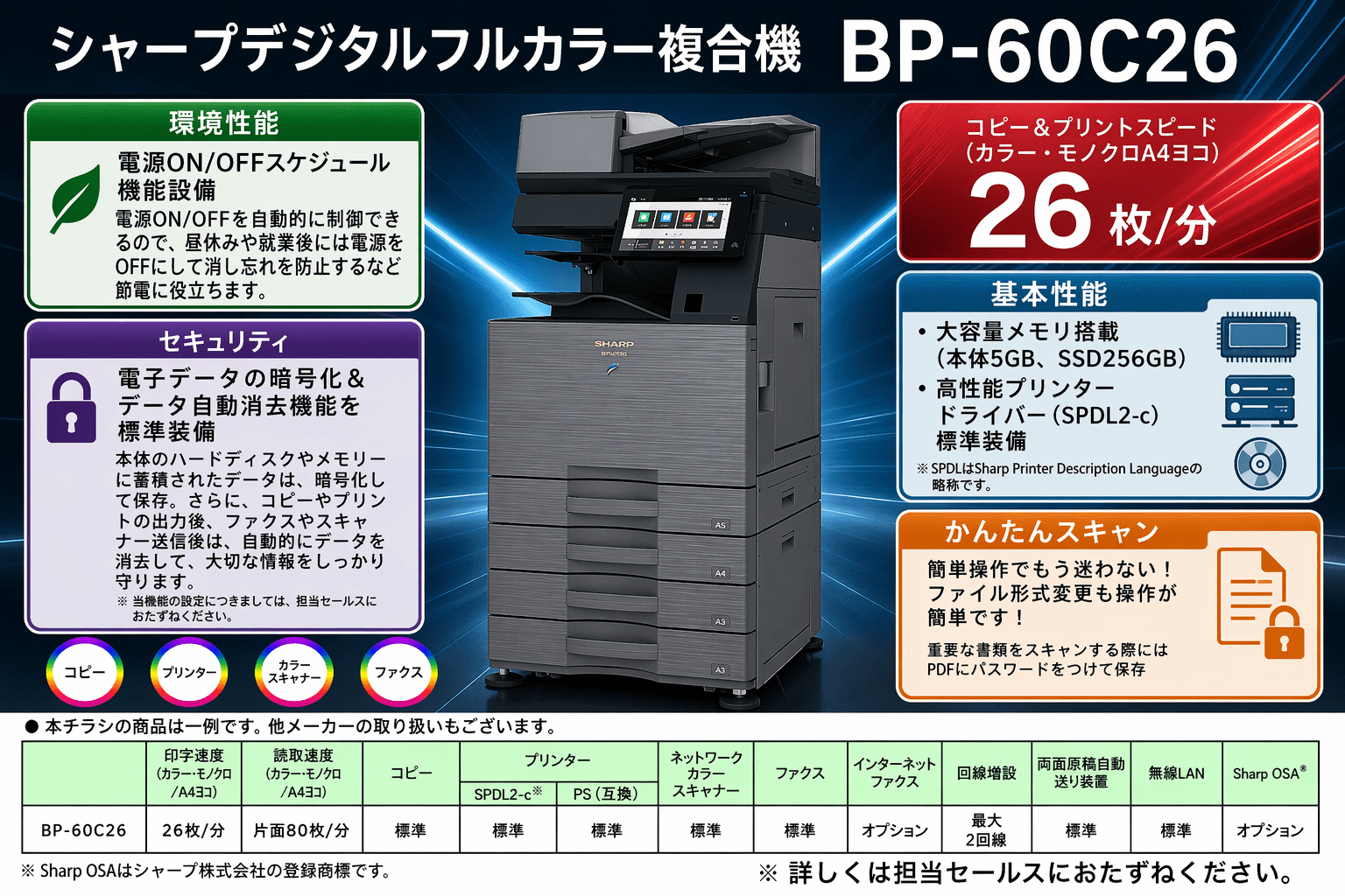 下記のシャープのデジタル複合機を始め、お手頃な複合機を取り扱っております。